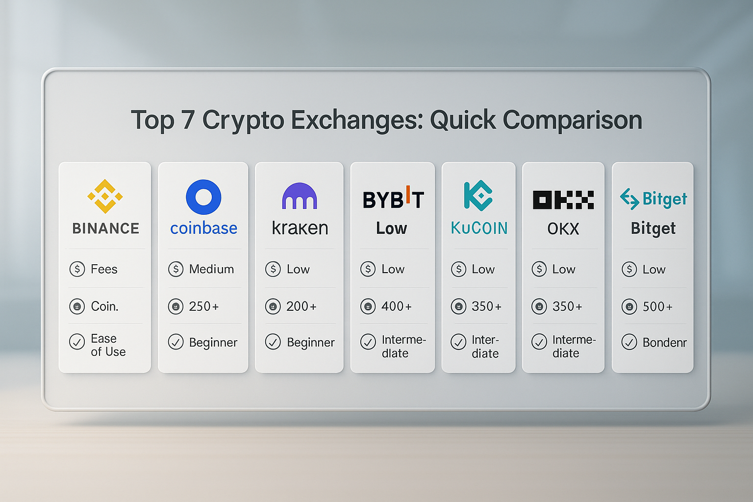 The best crypto exchange depends on your needs. For beginners, Coinbase and Kraken are top choices. For low fees and advanced tools, Binance and KuCoin stand out. Always consider security, fees, coin selection, and regional support.